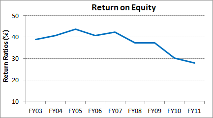 Infosys is India second largest IT services company and is a well-known name globally when it comes to ethical business practices. It’s also considered a benchmark when it comes to corporate governance and disclosure to investors. The company has been at the forefront of the offshoring revolution and has seen its sales and profit grow at a strong rate over the past few years. What is more, Infosys has also led the IT pack in terms of profitability, with its operating margins consistently remaining near the mid-30% levels.